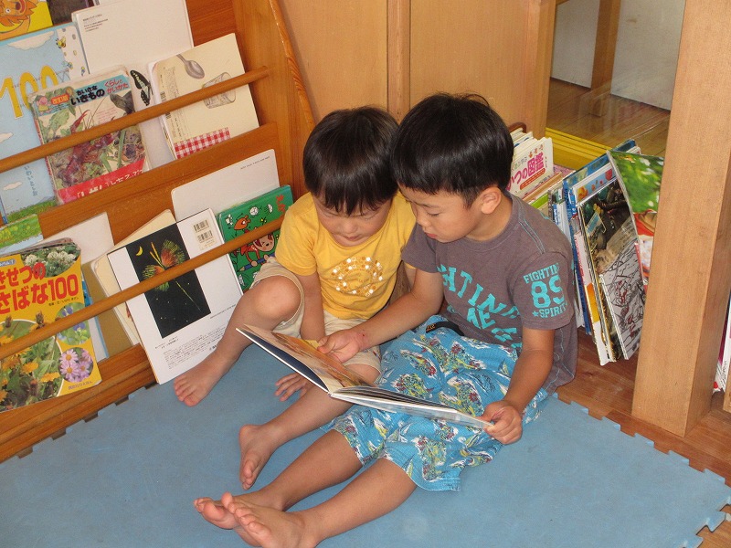 実年齢で1~3歳のたて割リクラスと3~6歳(2歳を含めることもある)のたて割りクラスで保育しています。 異年齢集団の中で保育することで、様々な人間関係を体験し、社会性を自然に身につけていきます。更に生活習慣の自立や、言葉、知的探求心も異年齢集団であると無理なく自然に獲得していきます。