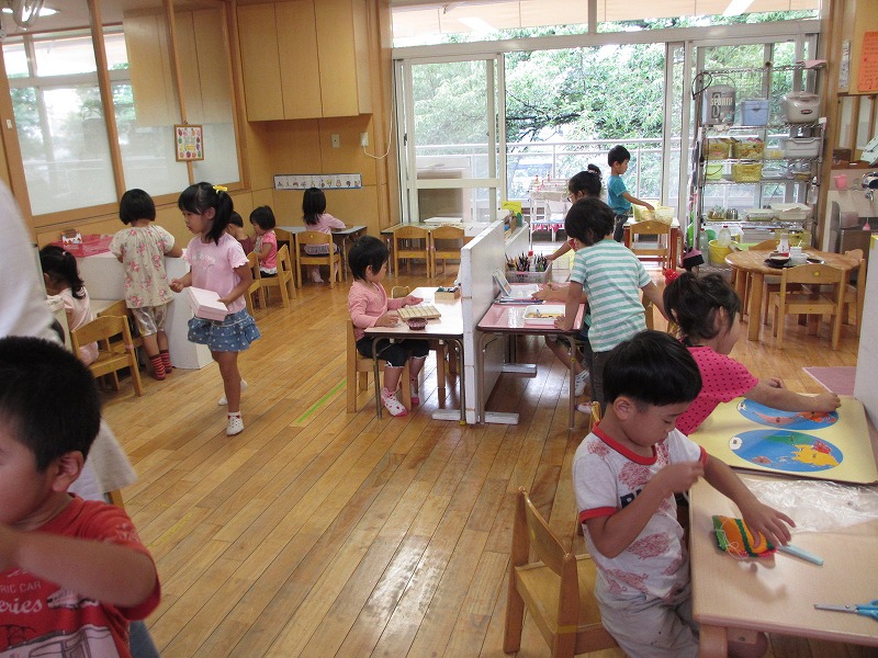 子どもは自分でやってみようという主体的なエネルギー・意欲をたくさんもっています。子どもの力でいろいろなことが出来る環境を整えることで、自発的な行動が引き出され、満足感や達成感を味わう体験が積み重ねられます。それにより自尊心が芽ばえて、やがて自信となって成長を遂げて行きます。 年齢別の集団活動も週に数回取り入れます。